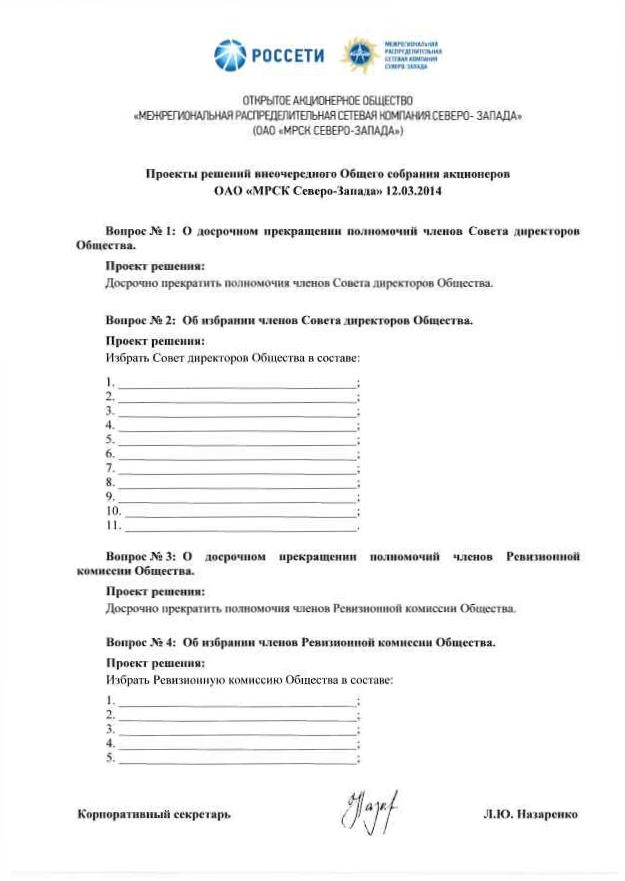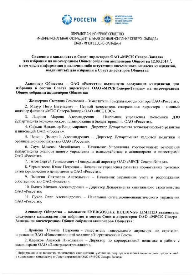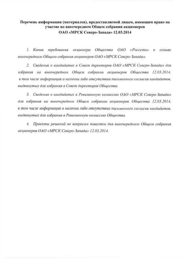 • Перечень информации (материалов), предоставляемой лицам, имеющим право на участие во внеочередном Общем собрании акционеров